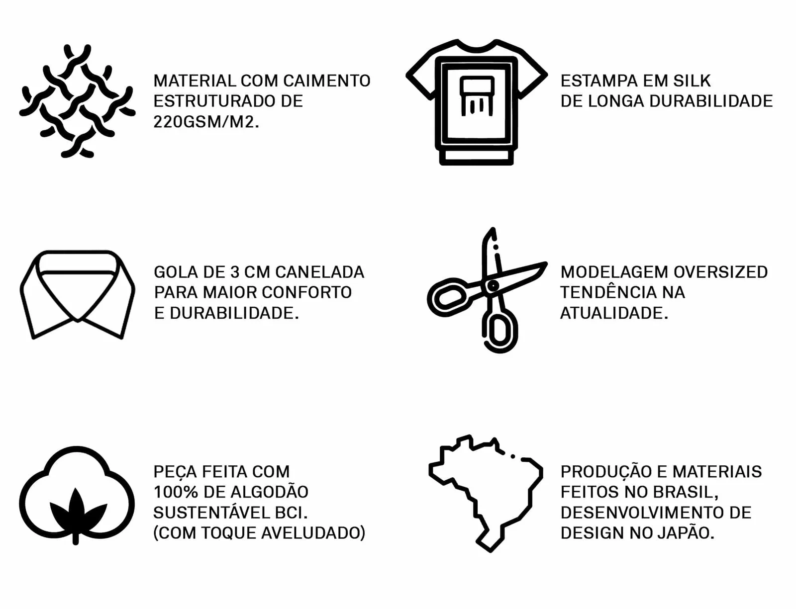 Nossas camisetas são confeccionadas em tecido 100% algodão de alta qualidade, com 220gsm balanceados para oferecer estrutura sem tornar a peça quente. Isso garante um toque suave, estrutural e conforto térmico — perfeita para o uso em todas as estações do ano.